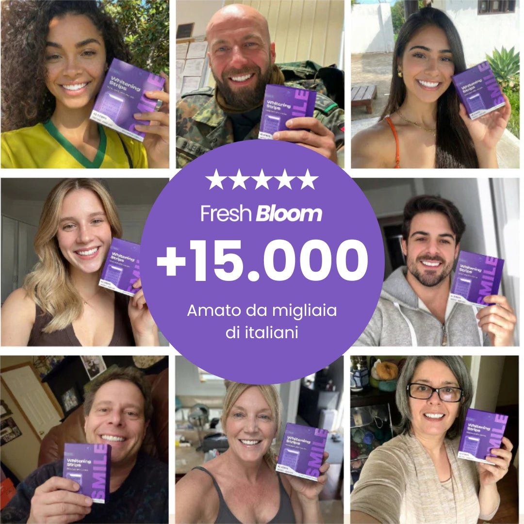 "Ero scettica, ma dopo la prima applicazione il giallo del caffè è letteralmente sparito. Non sento alcun fastidio ai denti, cosa che mi succedeva sempre con altri prodotti. Fresh Bloom è una garanzia."